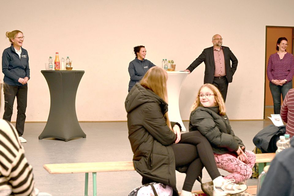 Anwesend waren die Initiatorinnen des Projektes, Andrea Schellenberger und Nadine Schwarz, die Geschäftsführerin des Sportzentrums Westend Jennifer Musielak, der Geschäftsführer des SV Motor Eberswalde Christian Mätzkow sowie Landrat Daniel Kurth. Unter den Gästen befanden sich sowohl Teilnehmende der vorangegangenen Studie "Trittsicher in die Zukunft" als auch neue potenzielle Kursteilnehmerinnen und -teilnehmer.